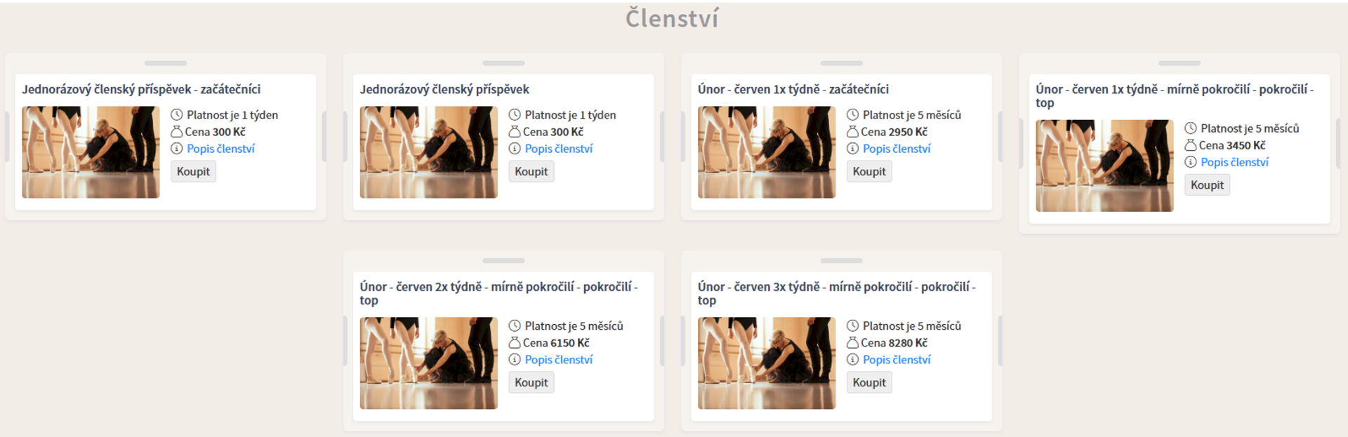 - Koupit si členství dle toho, jak často budete chtít navštěvovat kurzy (pozor lekce pro začátečníky mají zvlášť členství)