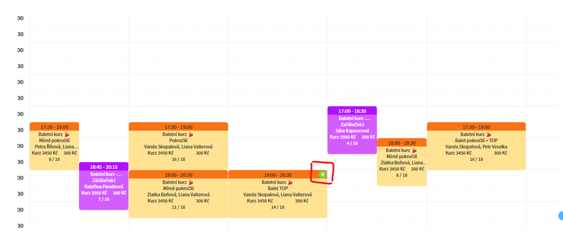 Kliknete na danou lekci, ze které se chcete odhlásit (min. 60min. před začátkem):